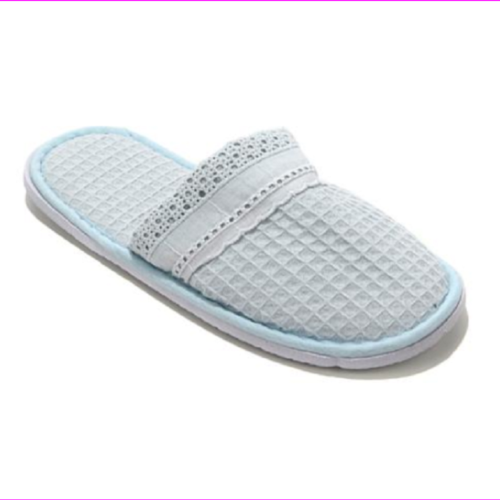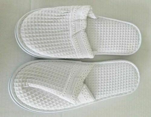Cottage Collection's Waffle Weave Slippers in White Aqua Small, Light Aqua in large and XLG. Slippers are new in package, 100% cotton with eyelet trim. Nice and light, great for summer days, and something light on your feet.