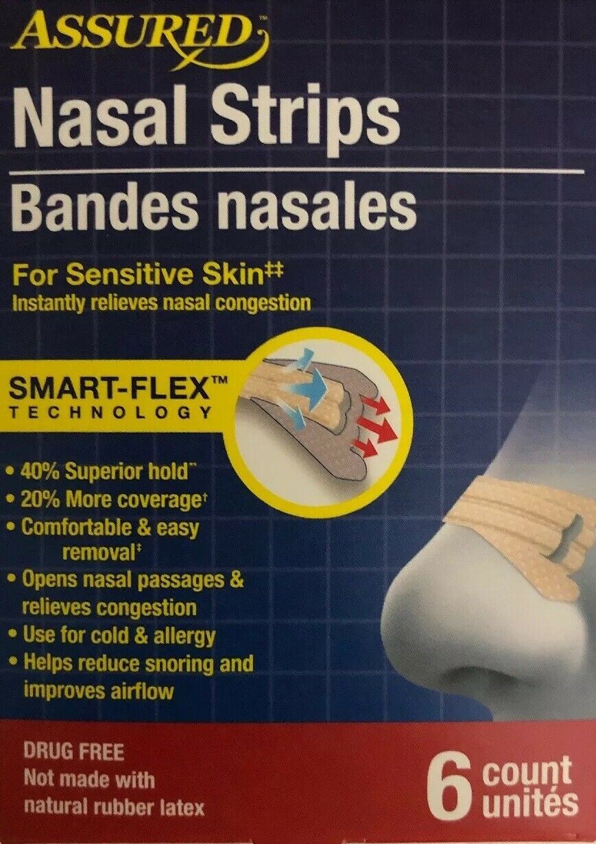 NASAL STRIPS Cold, Allergy Snore Relief Long Lasting Hold Latex Free 6 Ct/Box.