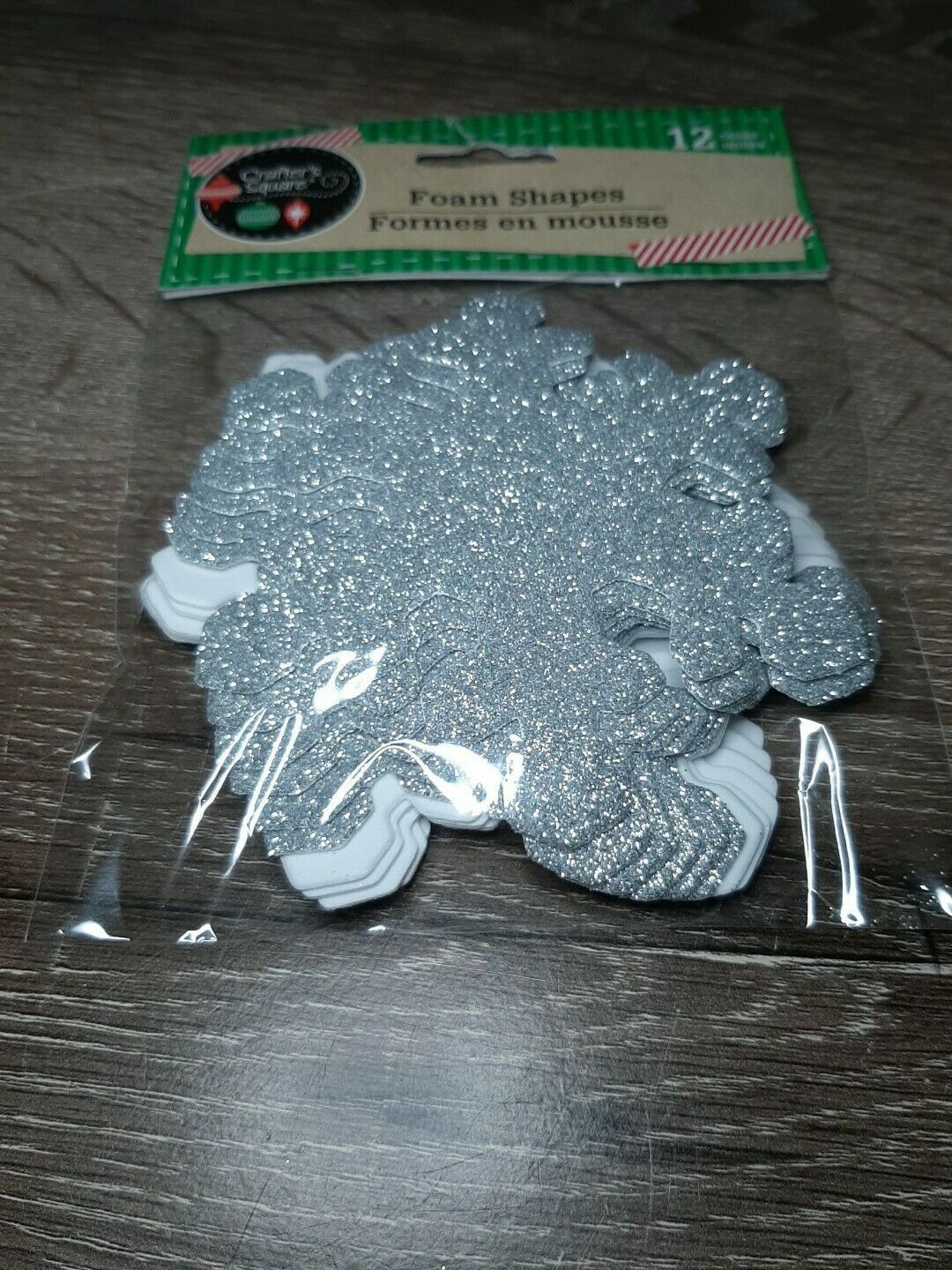 New Foam Winter Christmas Shapes Kids Crafts ~ White and Silver Glittery Snowflake (1 pk of 12 ct).