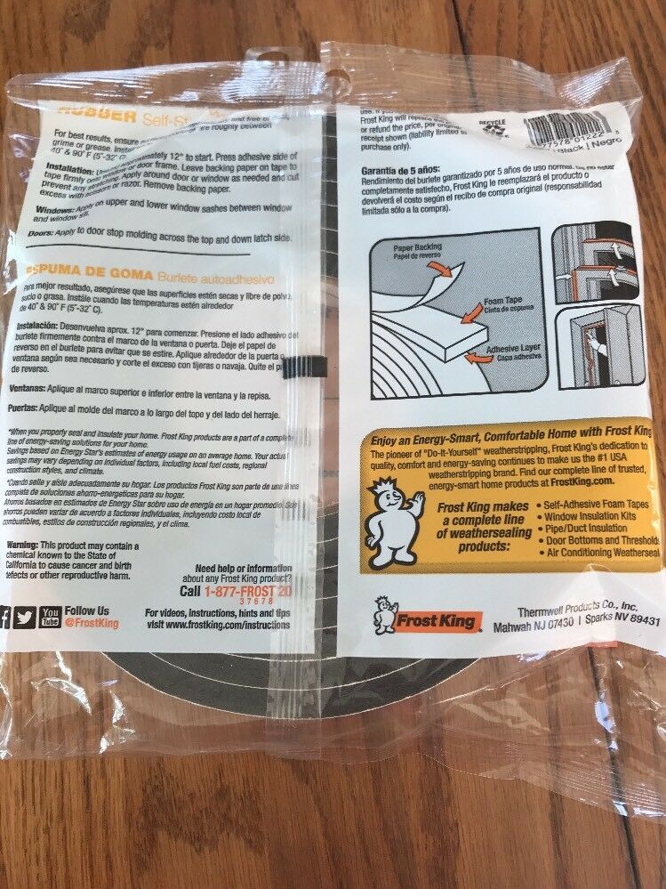 Frost King #R534 3/4x5/16 X 10ft Long Black Ships N 24h