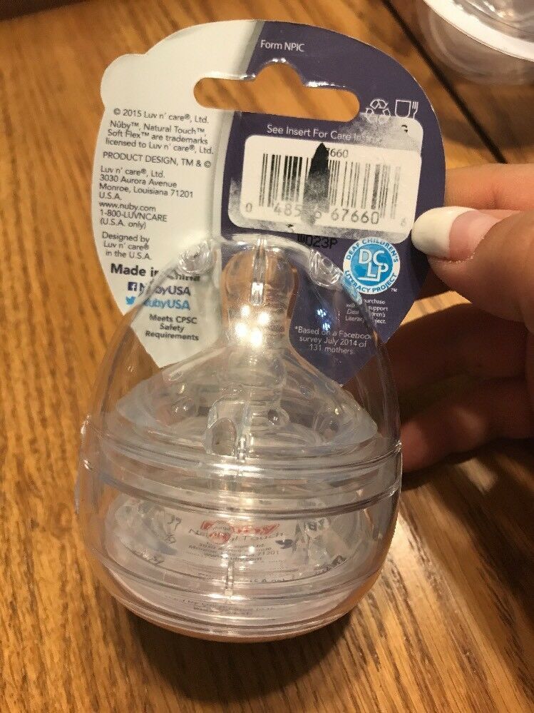 NUBY 2pc NATURAL TOUCH BOTTLE NIPPLES 0m+ Slow Flow Ships N 24h