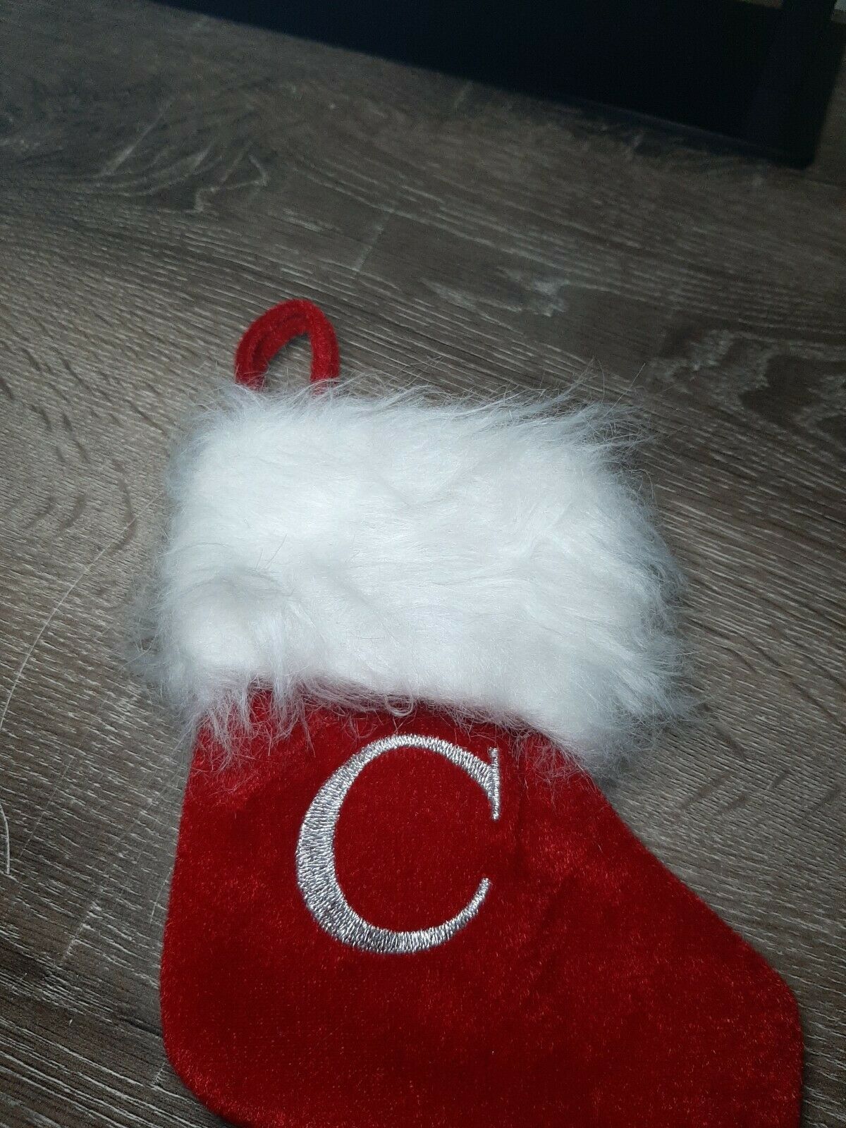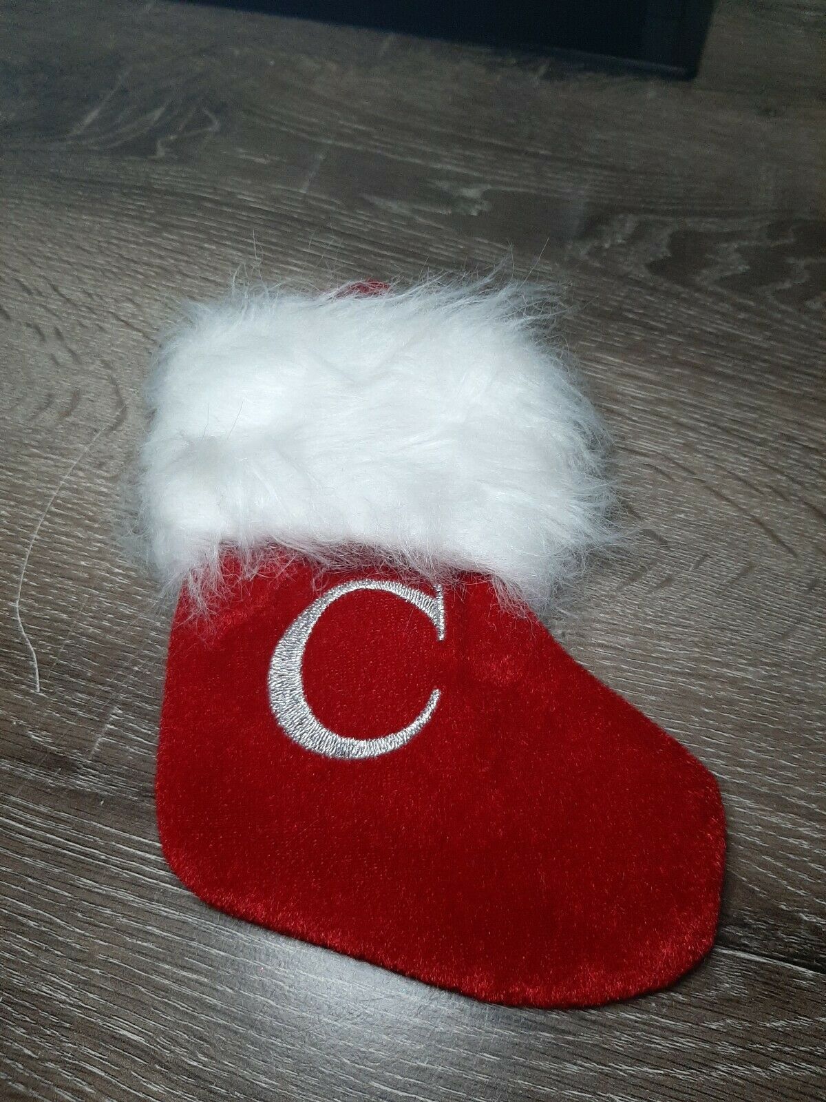(1) December Home Mini Stocking, Red and White. C initial. Condition is "New". Shipped with USPS First Class Mail within 24 hours.