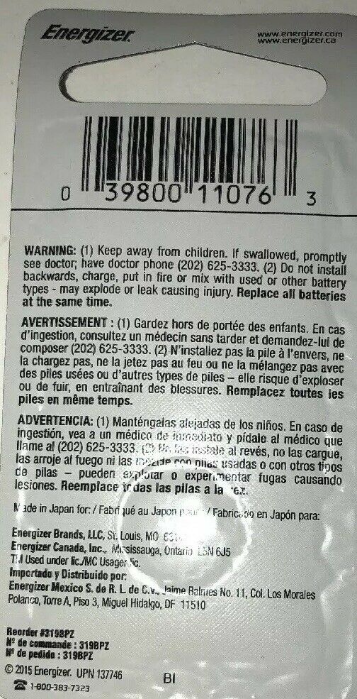 Energizer 319(SR527SW)Silver Oxide Watch Battery-U Receive 1 Ea #319 Battery