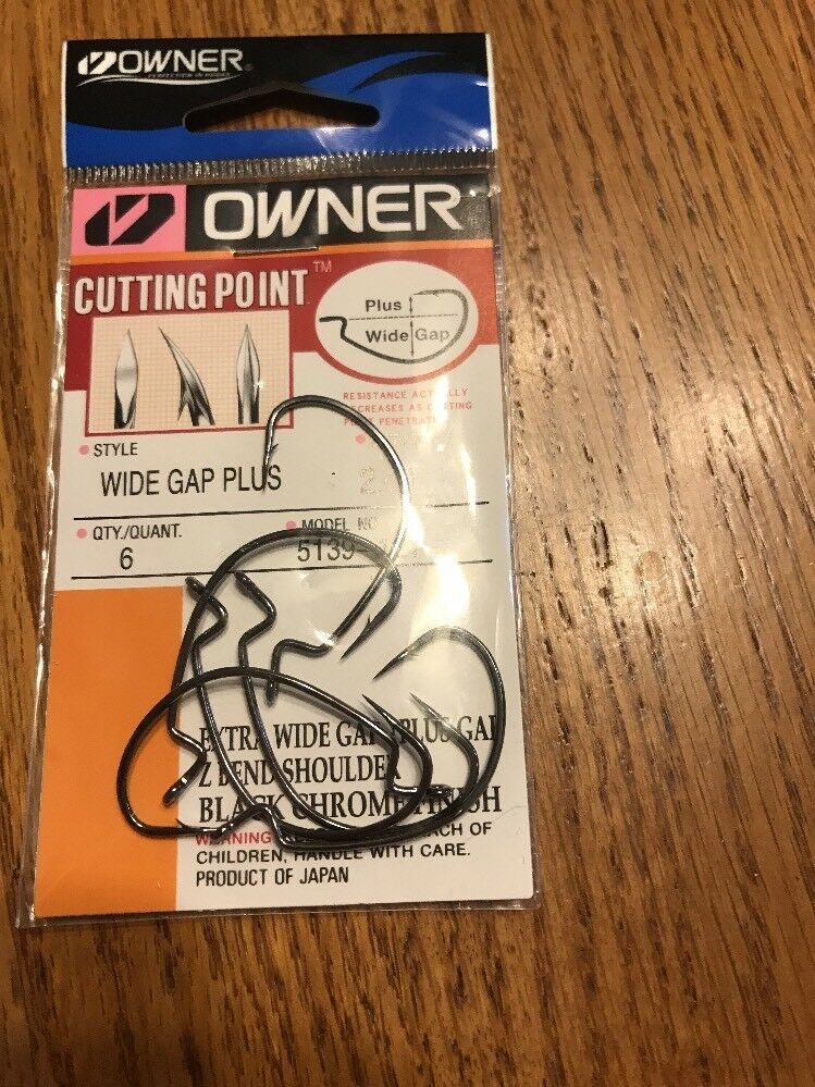 Owner 5139-121 Bass 6 Per Pack Size 2/0 Black Chrome Wide Gap-Plus Fishing Hooks