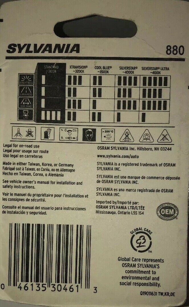 You Will Receive 1 ea Sylvania Basic 880 H27 27W One Bulb Fog Light Replacement Lamp.