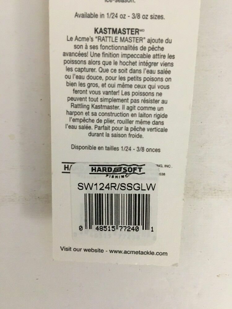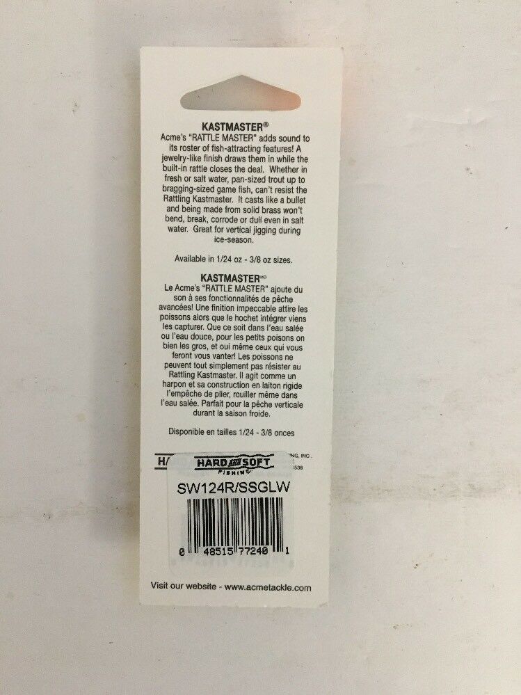 Acme Kastmaster Rattle Master Spoon Baitfish/UV GLOW SW124R/SSGLW-RARE-SHIP N 24