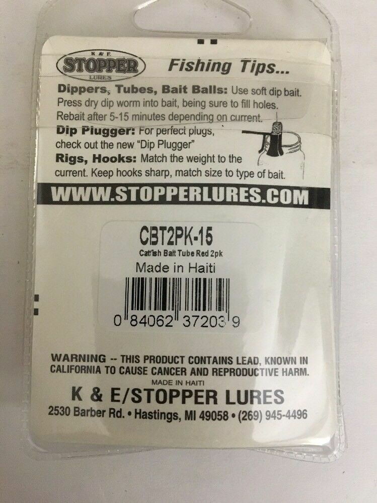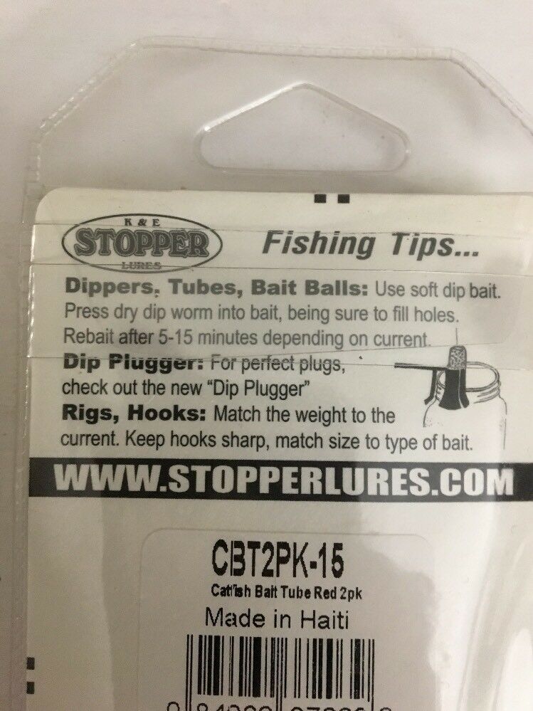 K & E Catfish Stopper Dipper Bait Tubes Fishing Lure-2 1/2"Red-CBT2PK-15-RARE