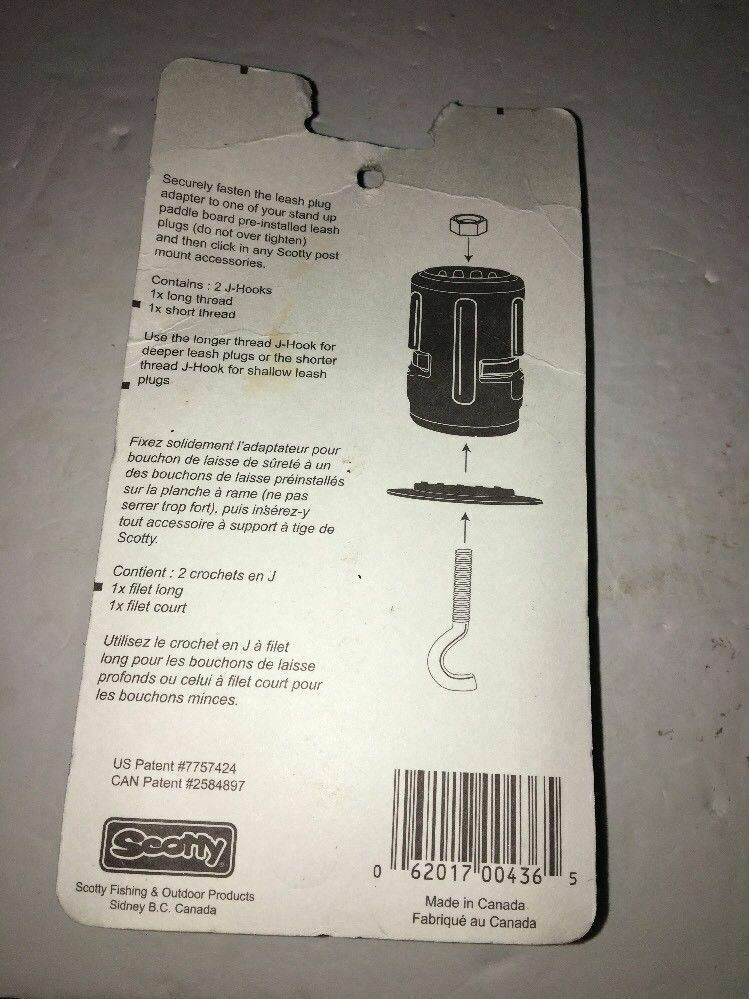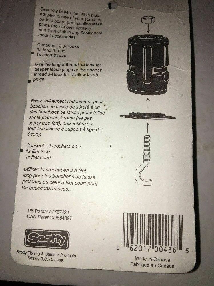 Scotty 436 Stand Up Paddle Board Leash Plug Adapter W 2 J Hooks
