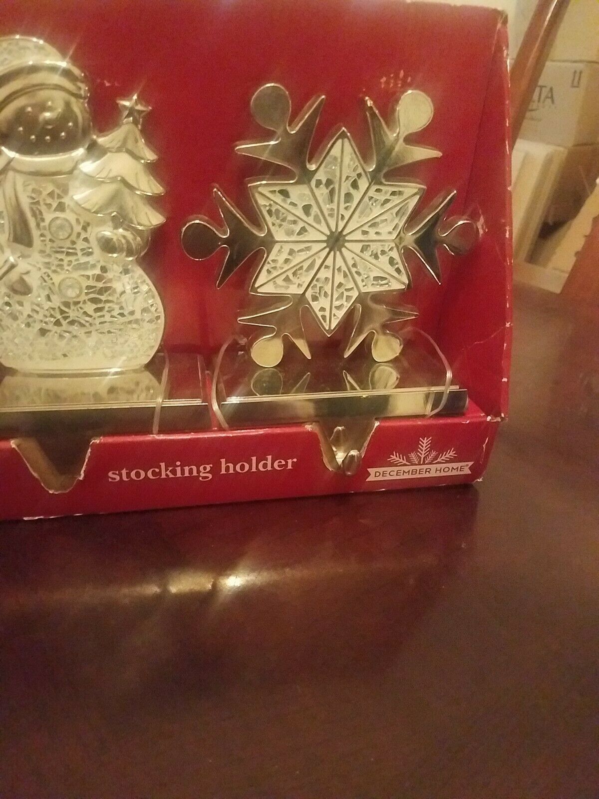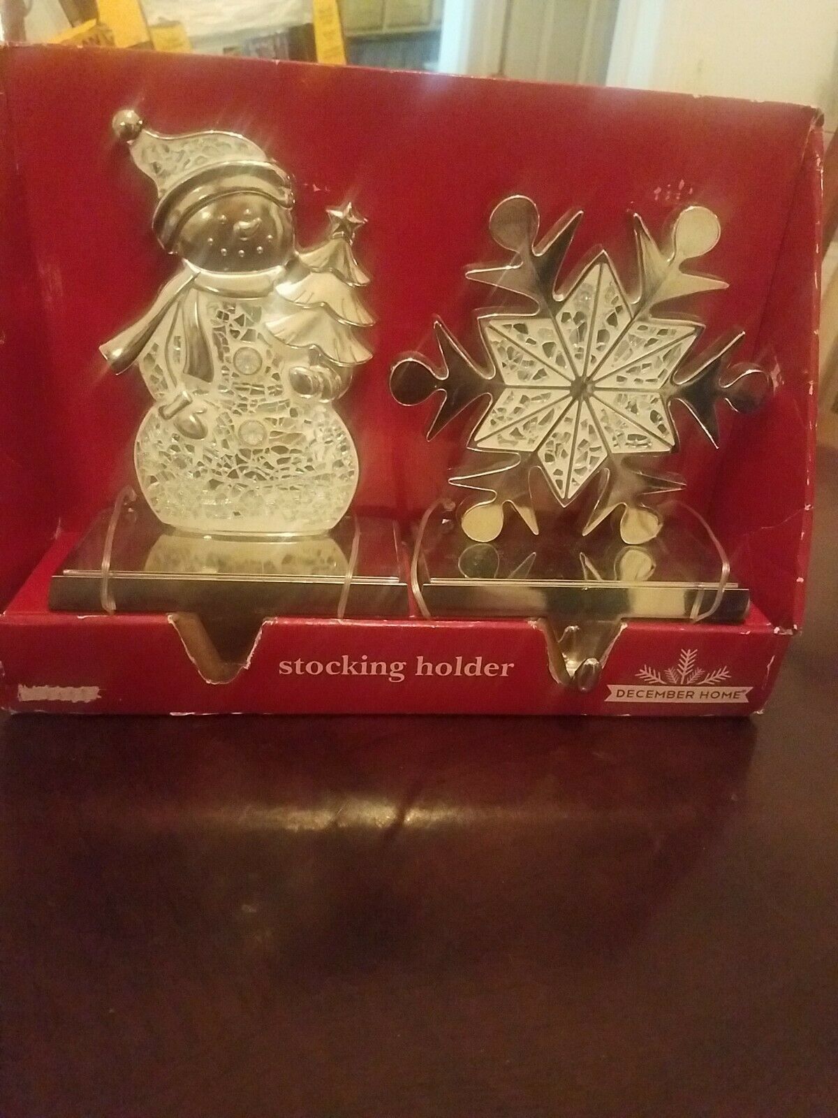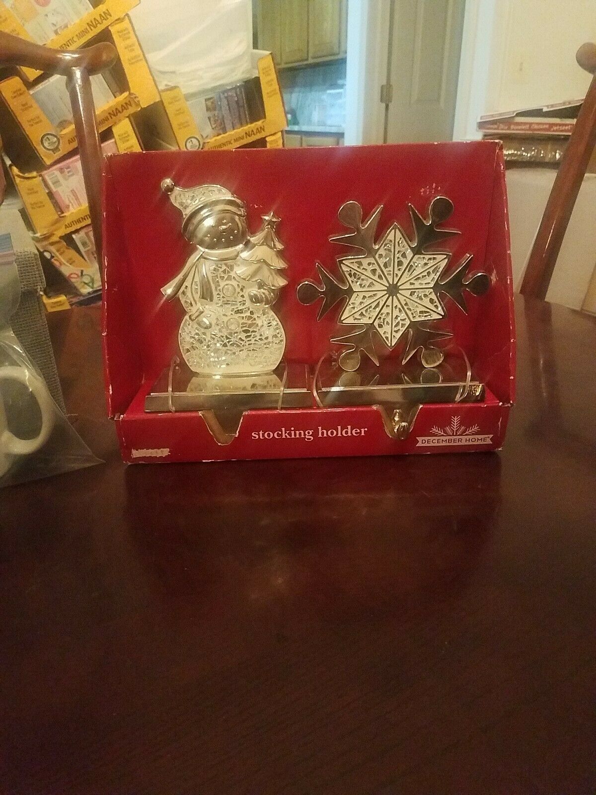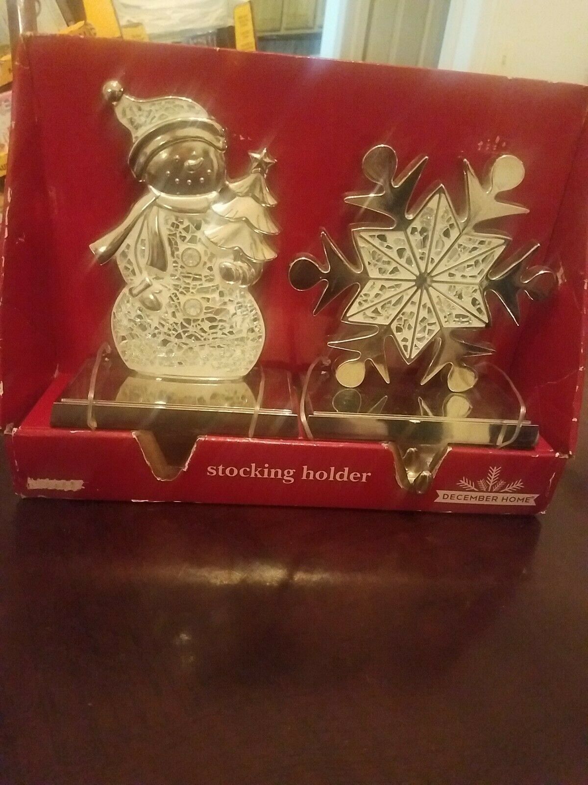 Stocking Holder December Home Snowman is missing hook sold as is. Condition is "New". Shipped with USPS inventory box number 3066