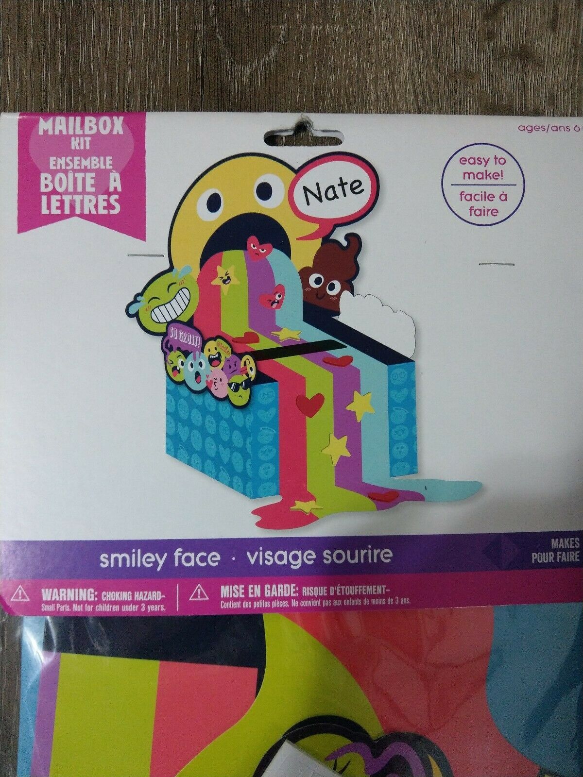 Smiley Face Mail Box Kit~Kids~Easy to make~ Condition is New. Shipped with USPS First Class Package within 24. Mailbox is cardboard. Cute craft for little ones.