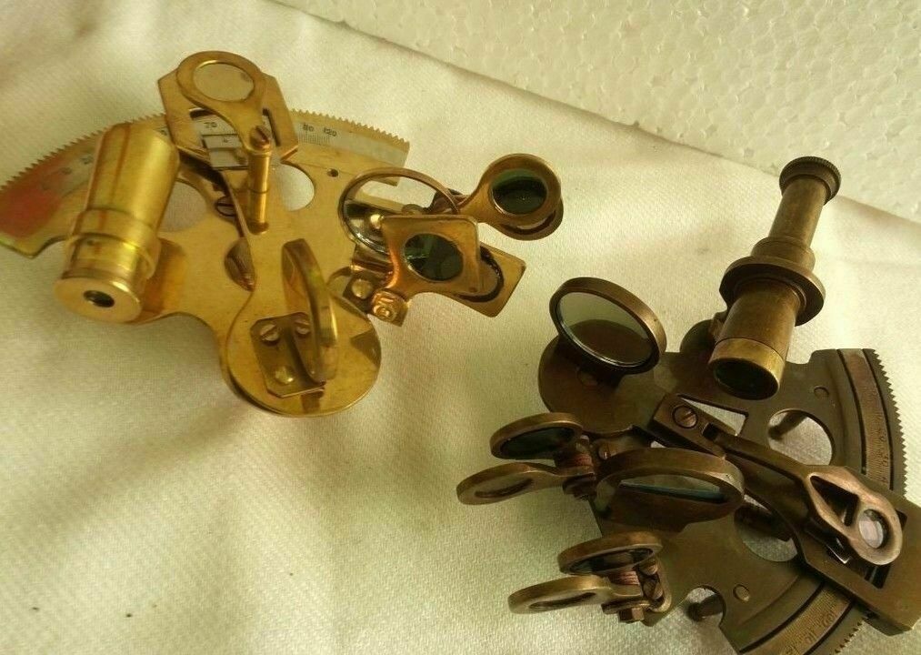 Antique Set Of 2 Pcz" Nautical Brass Sextant - Vintage Heavy Bronze Sextant- Shi