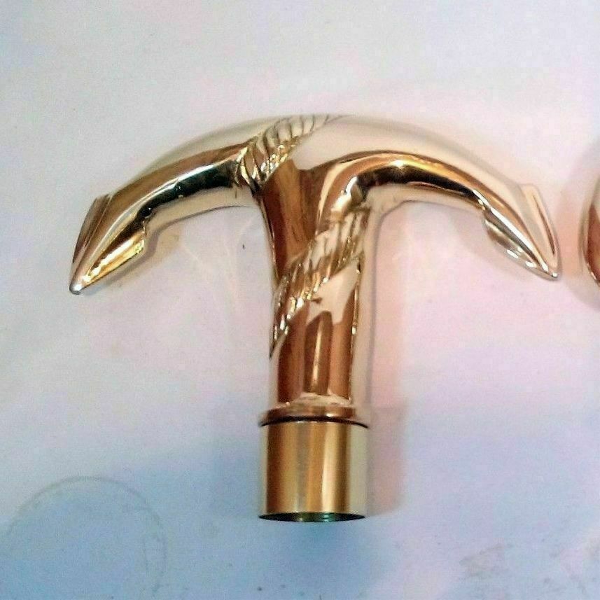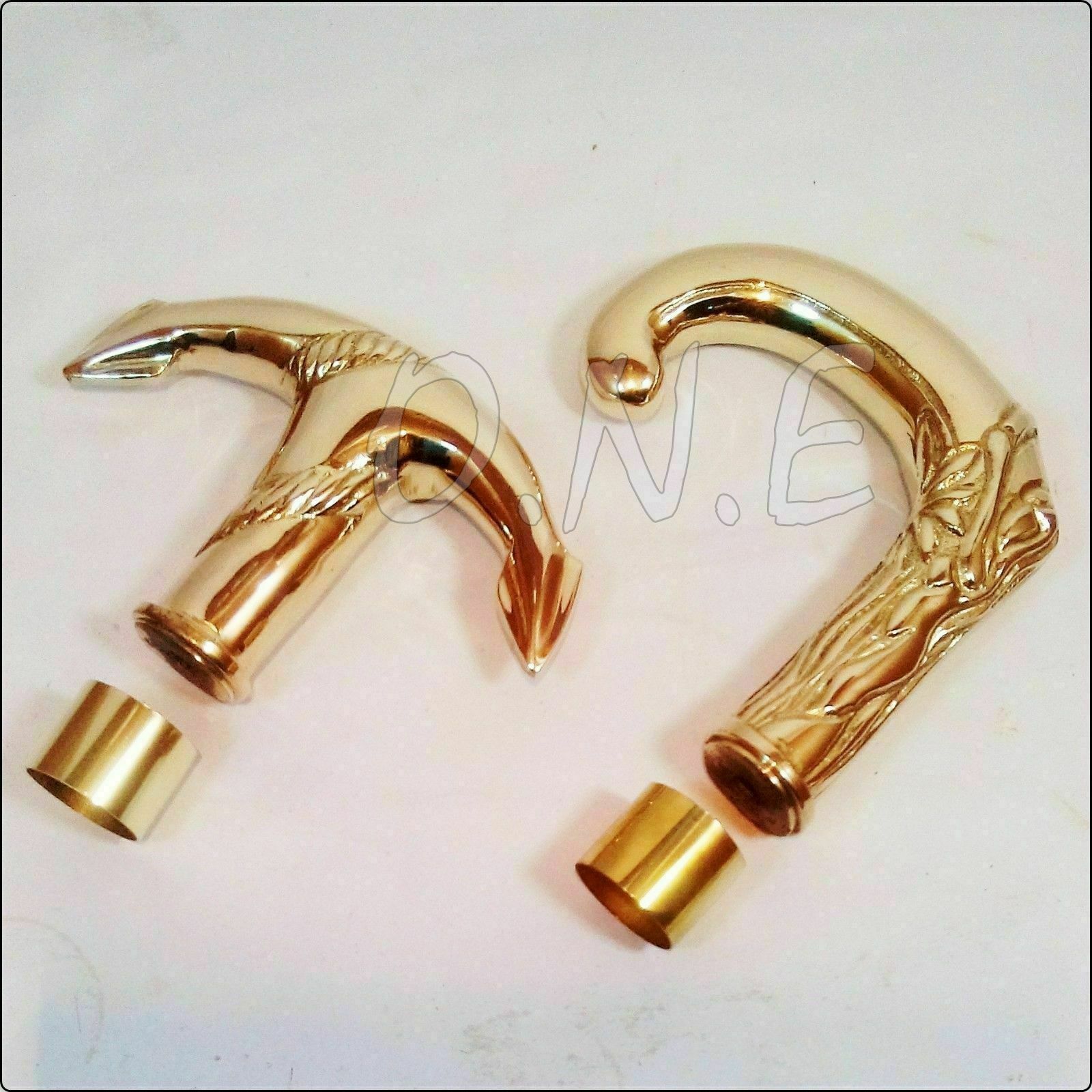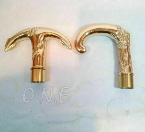 Antique Beautiful 2 Pics. Solid Brass Designer Handle Style Head Stick Cane gift
