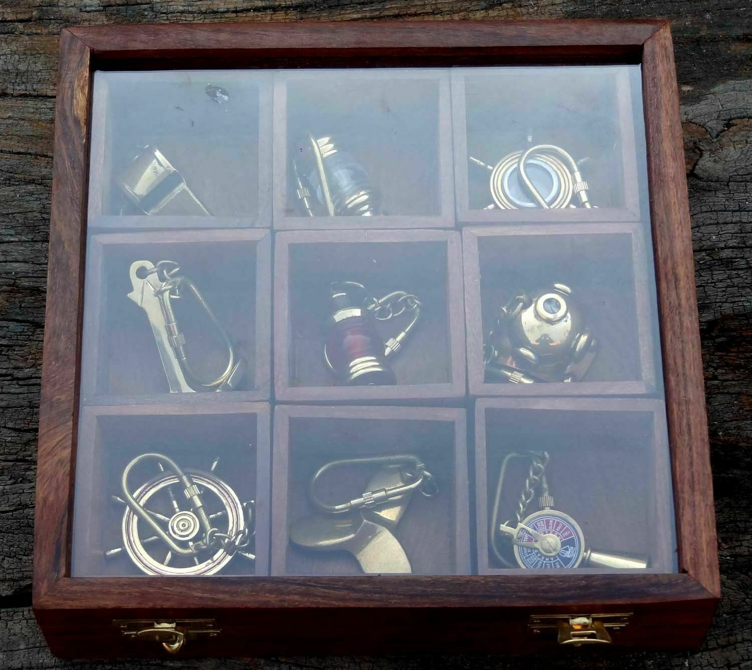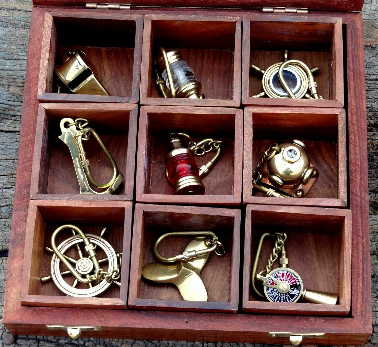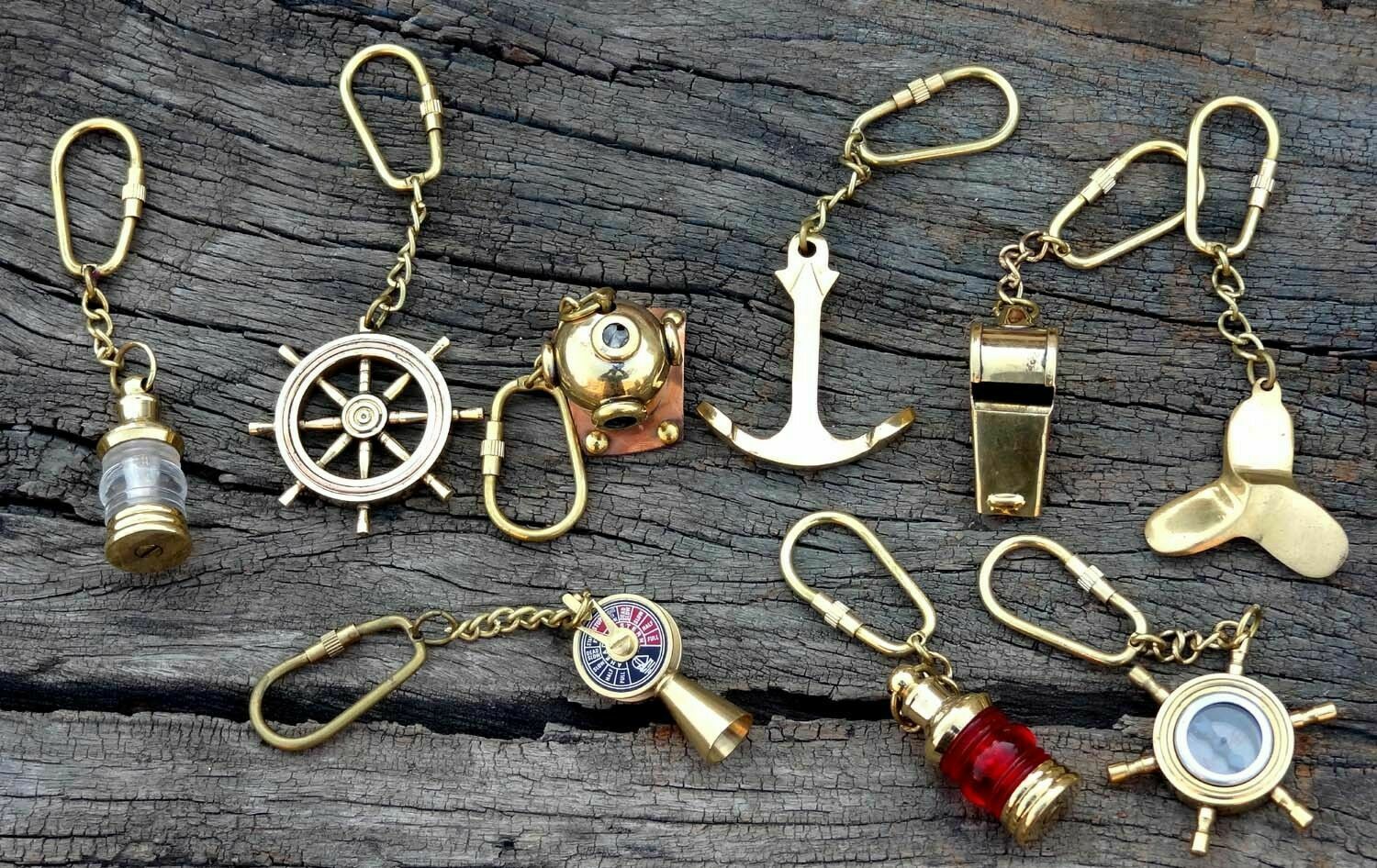 LOT of 9 Nautical Brass key rings key chains Vintage Style Steampunk Gift Set