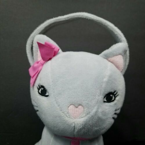 Gymboree Gray KItten Cat Coin Purse Plush Stuffed Valentines Pink Heart Nose 9"