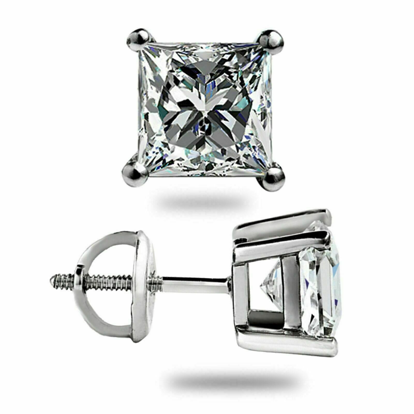 2Ct Princess Cut Solitaire Stud Earrings 14k White Gold Over