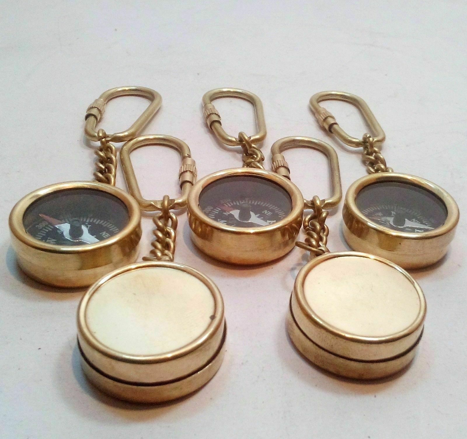 Lot Of 5 Nautical Vintage Maritime Gift Antique Brass Pocket Compass Key Chain