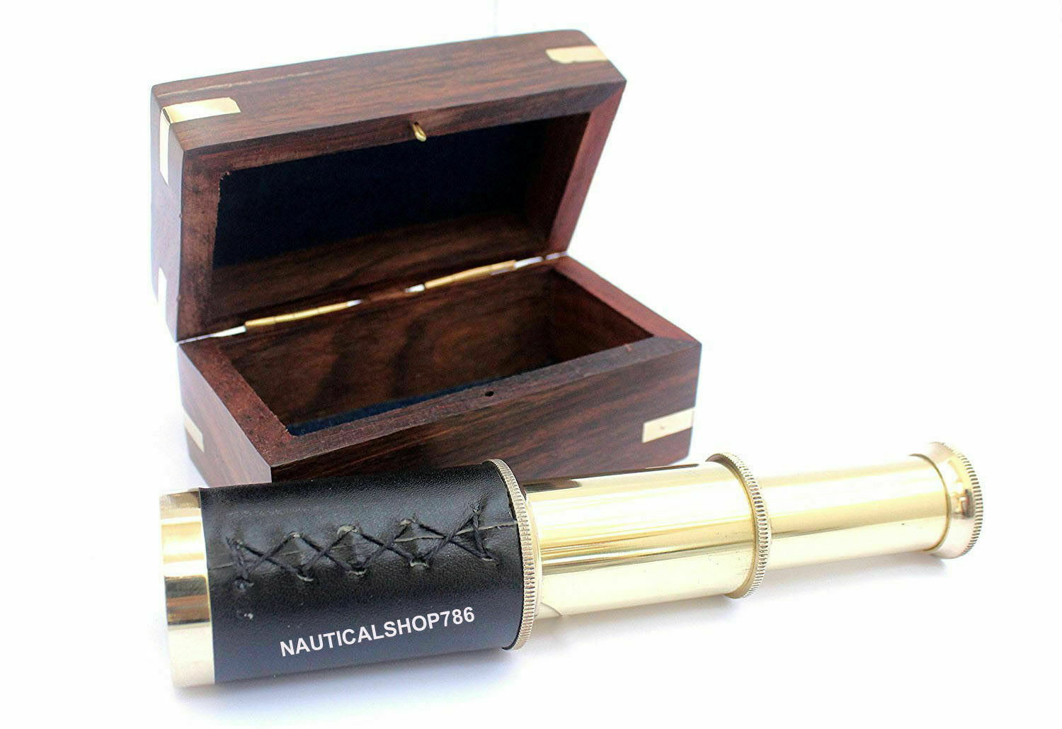 Nautical Brass Telescope Black Leather For Christmas Gifting Item With Box