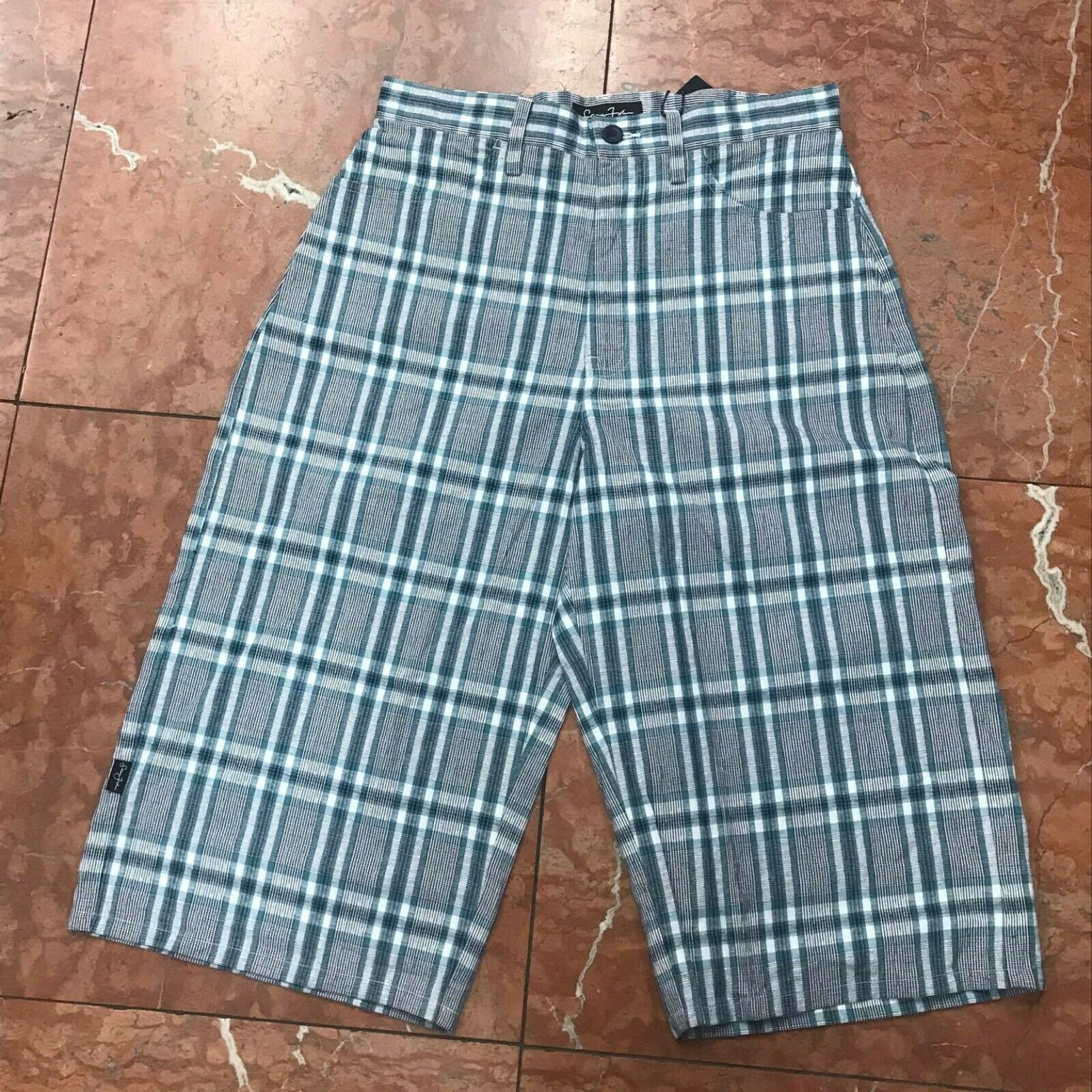 Men's Sean John Plaid Grey | Turquoise | White Casual Shorts NWT