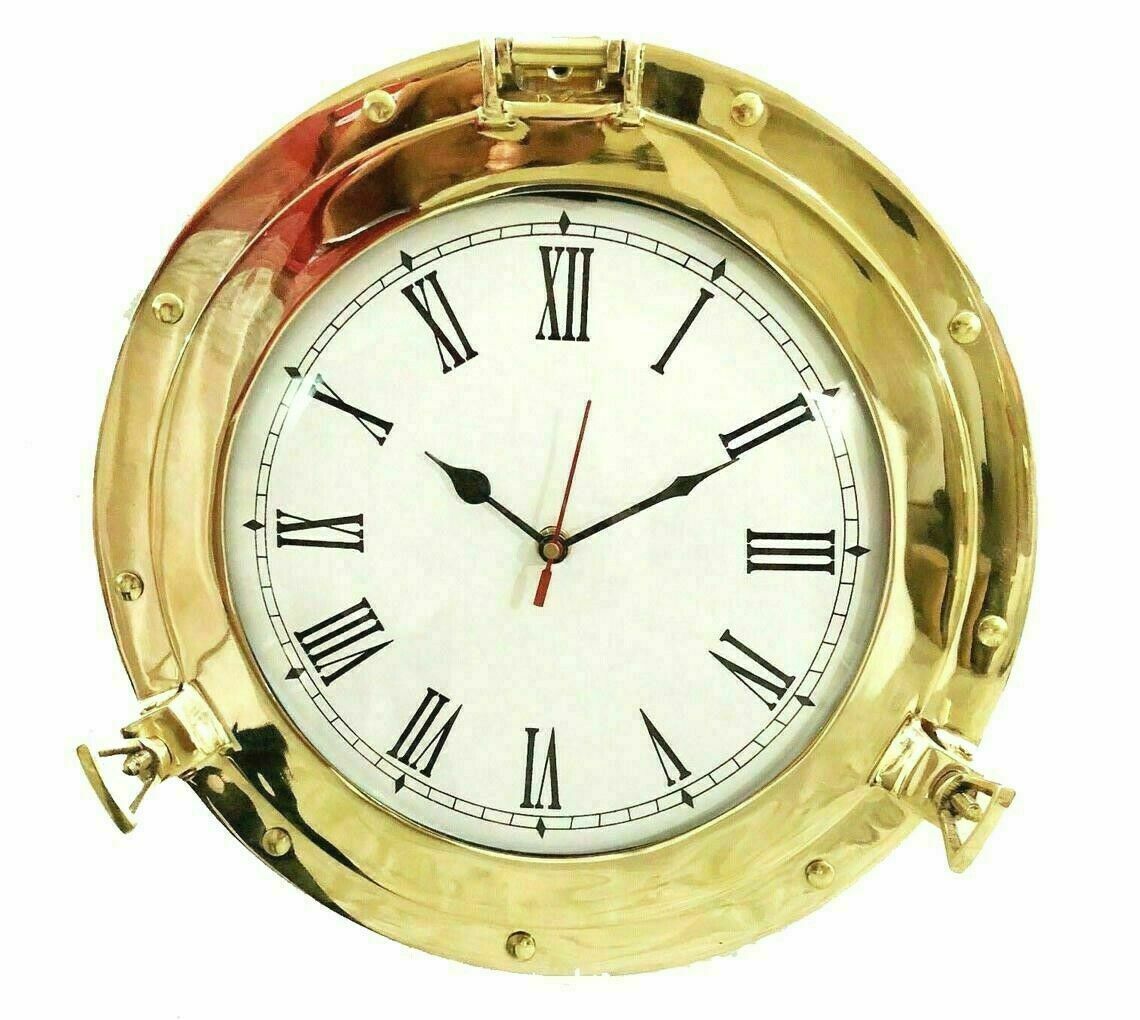 Antique Brass Porthole Wall Clock Vintage Home & Office Decor