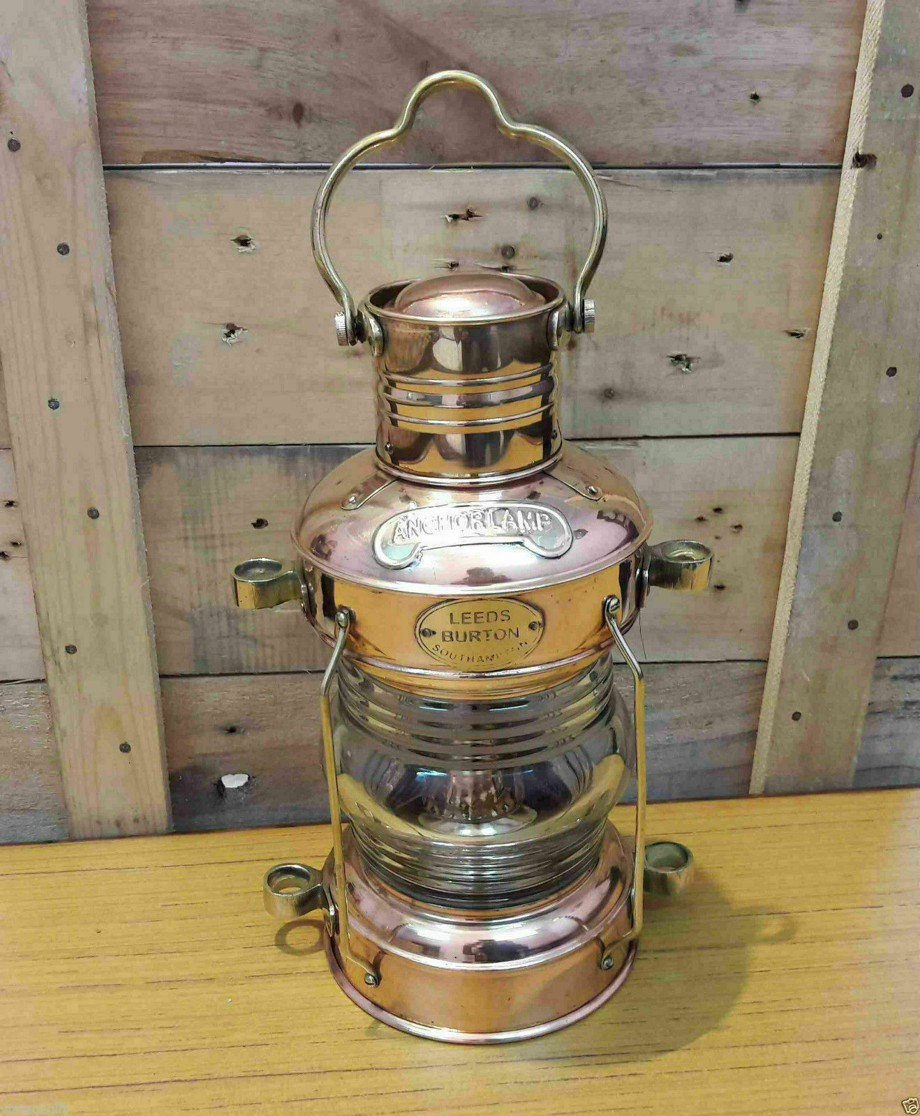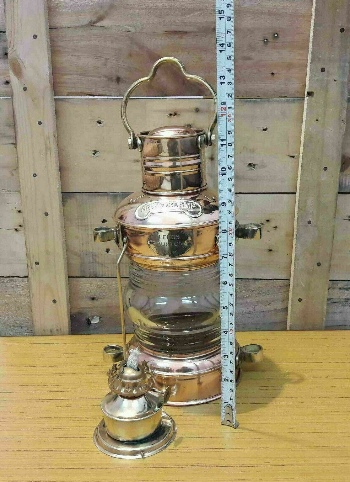 Brass Copper Anchor Oil Lamp Leeds Burton Nautical Maritime 14" Ship Lanterns