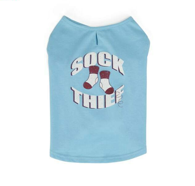 You are Buying a brand New YOULY The Maverick Blue Sock Thief Dog Graphic T-Shirt, X-Small.