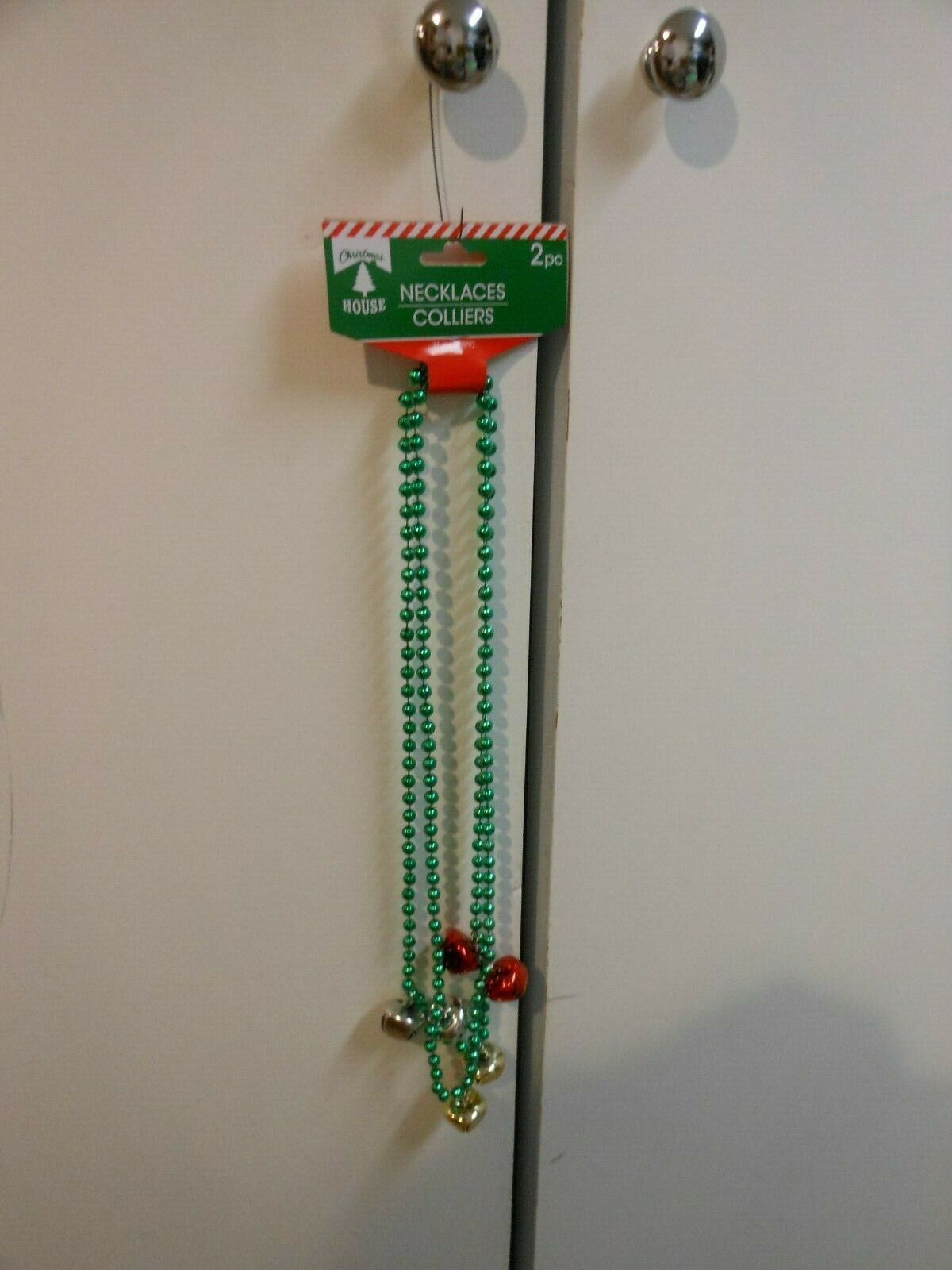 Christmas House Novelty Green Metal Necklaces & Color Bells NEW with Tags 2 Pc.