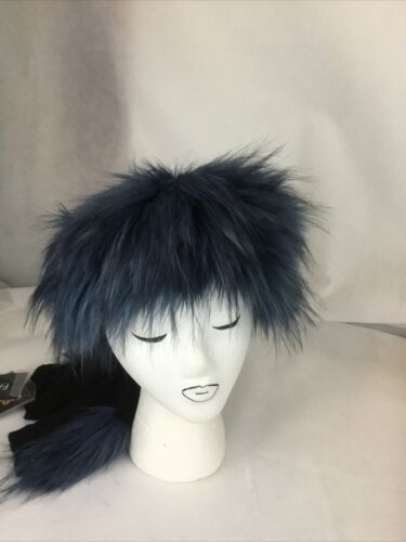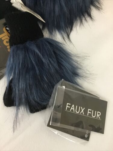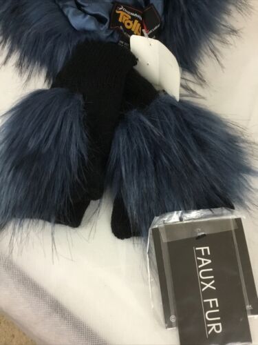 A Adrienne Landau Dreamworks Trolls Blue Fur Hat and Fingerless Glove Set, NWT