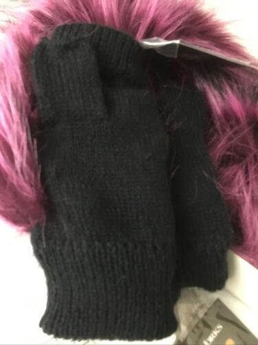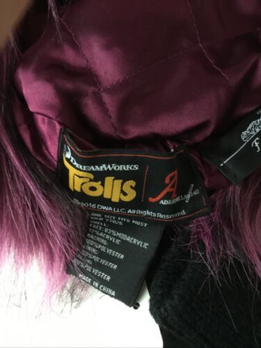 A Adrienne Landau Dreamworks Trolls Burgundy Faux Fur Hat and Fingerless Glove Set, NWT.