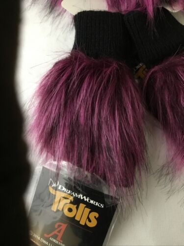 A Adrienne Landau Dreamworks Trolls Faux Fur Hat and Fingerless Glove Set, NWT