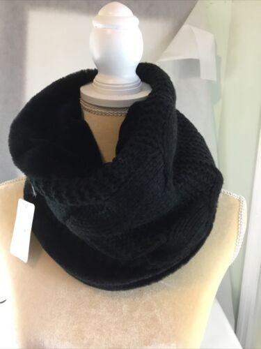 Reversible Concierge Knit Fur Neck Warmer Infinity Scarf, Ski Fashion Black NWT