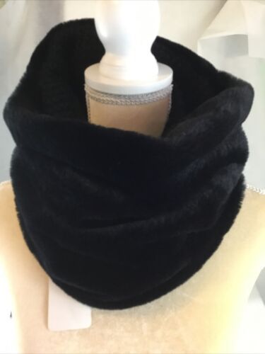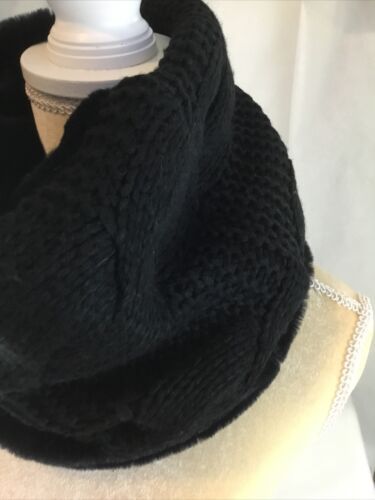 Reversible Concierge Knit Fur Neck Warmer Infinity Scarf, Ski Fashion Black NWT. “ height, and flat measurement 13” across.