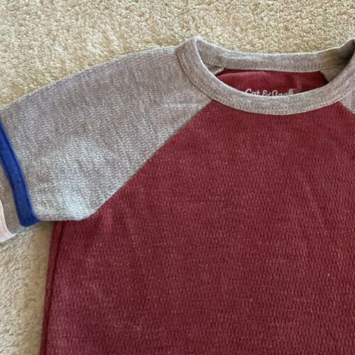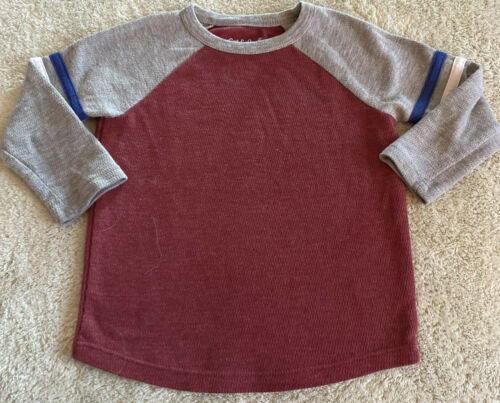 Cat Jack Boys Red Gray Raglan Thermal Long Sleeve Shirt 2T.