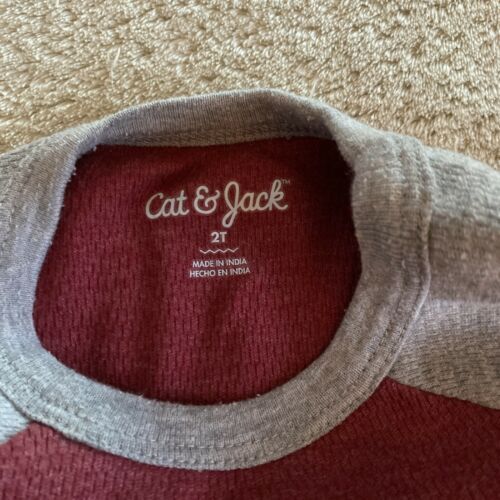 Cat & Jack Boys Red Gray Raglan Thermal Long Sleeve Shirt 2T
