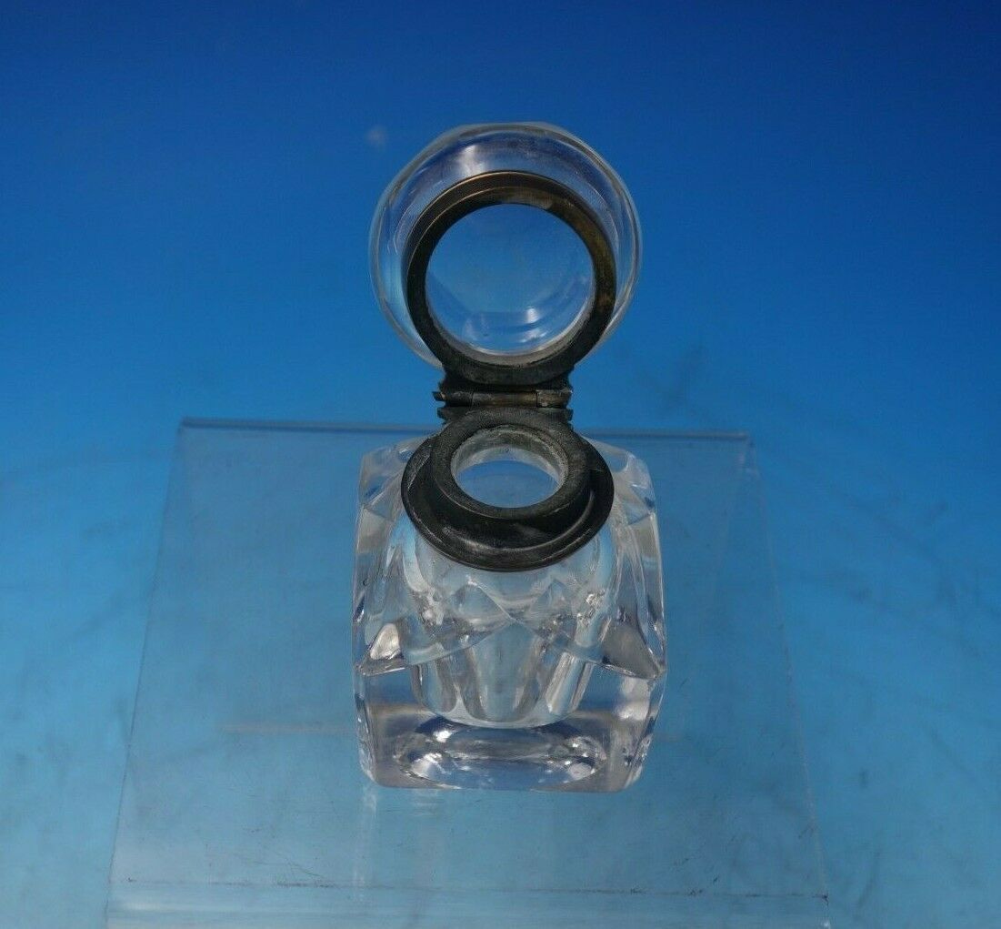 Crystal Inkwell with Brass Rim 3 1/2" x 2 and similar items