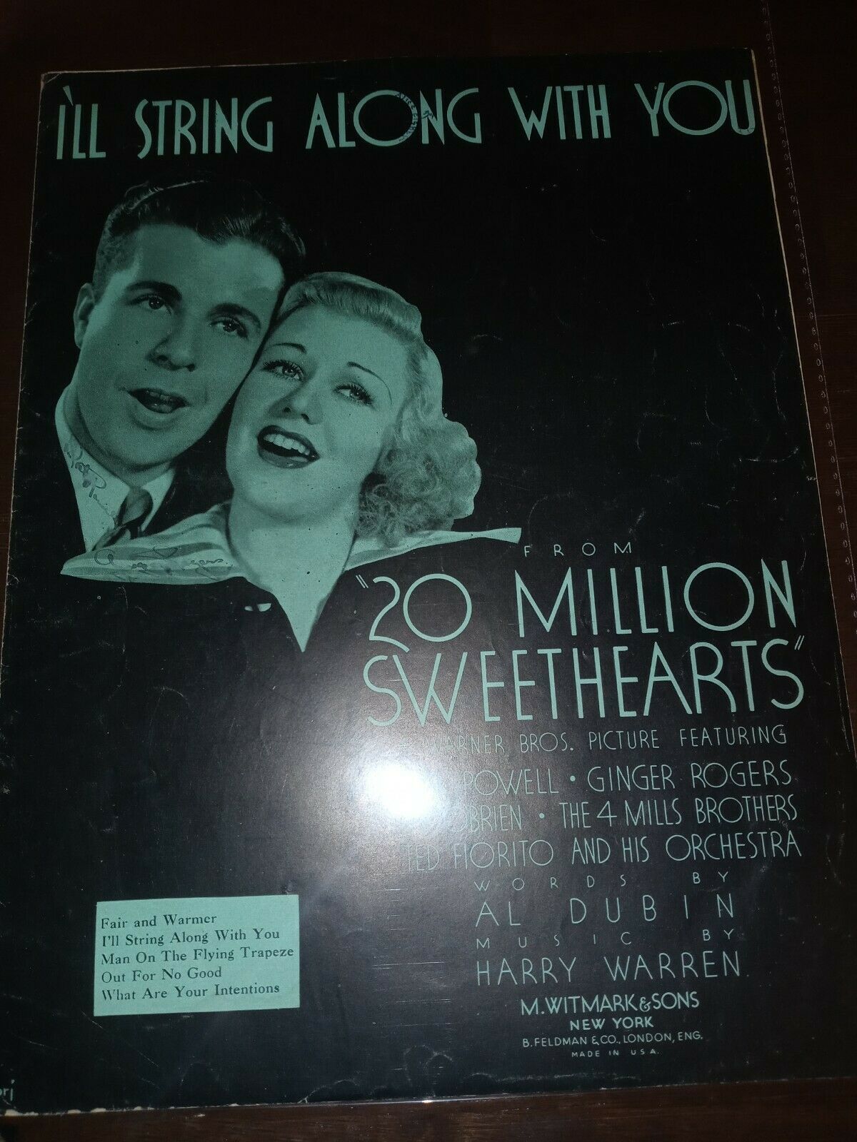 Ill String Along With You 20 Million Sweethearts Sheet Music 1934