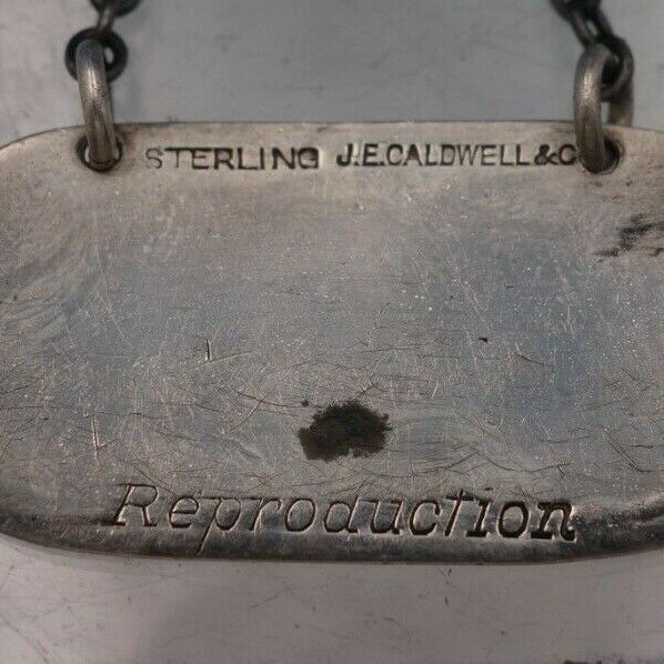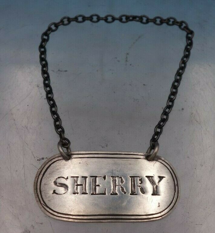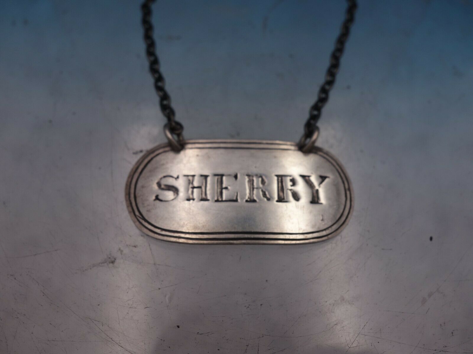 JE Caldwell Reproduction Sterling Silver Liquor Label "Sherry" w/ Chain (#6644)