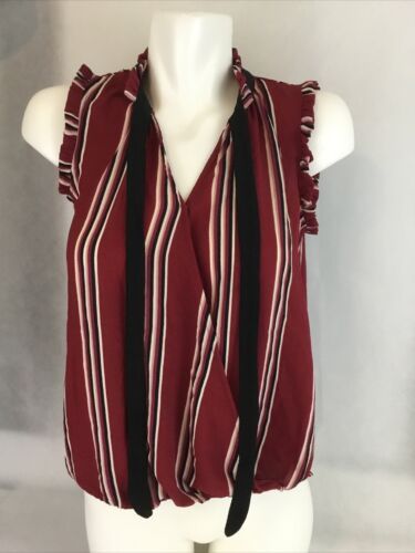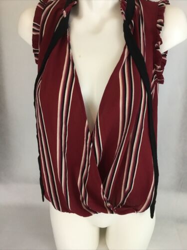 Xhiliration Sleeveless Ruffled Top Wine Burgundy With Cross Over Front Hi Style. NEW.