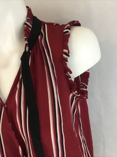 Xhiliration Sleeveless Ruffled Top Wine Burgundy With Cross Over Front Hi NWOT