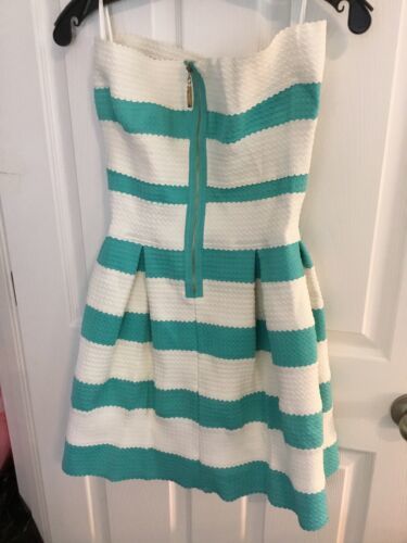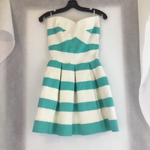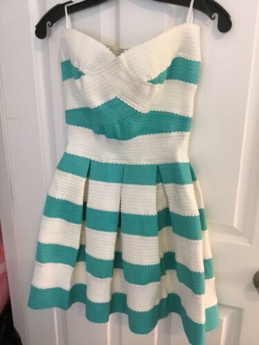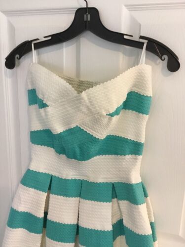 San Joy Aqua Teal Blue and White Stripe Off Shoulder Mini Dress NWOT size Medium.
