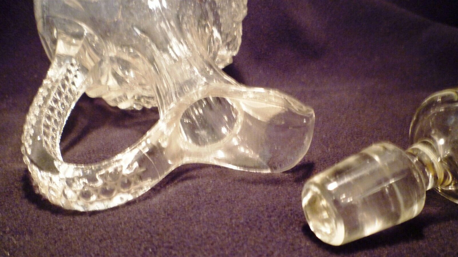VINTAGE CLEAR PRESSED GLASS WINE PITCHER DECANTER