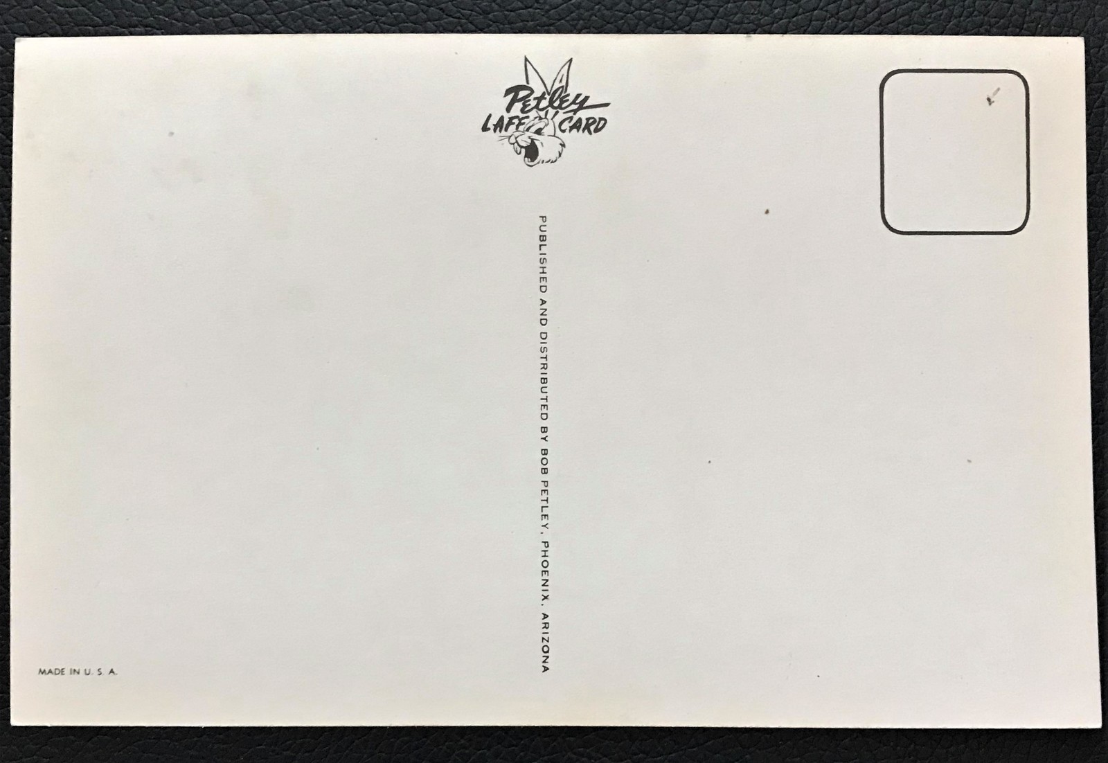 We're presenting a series of terrific postcards from the 50's, 60's and 70's with many varieties of subjects. This one is a Petley Laff Card from the 1950's. Funny.