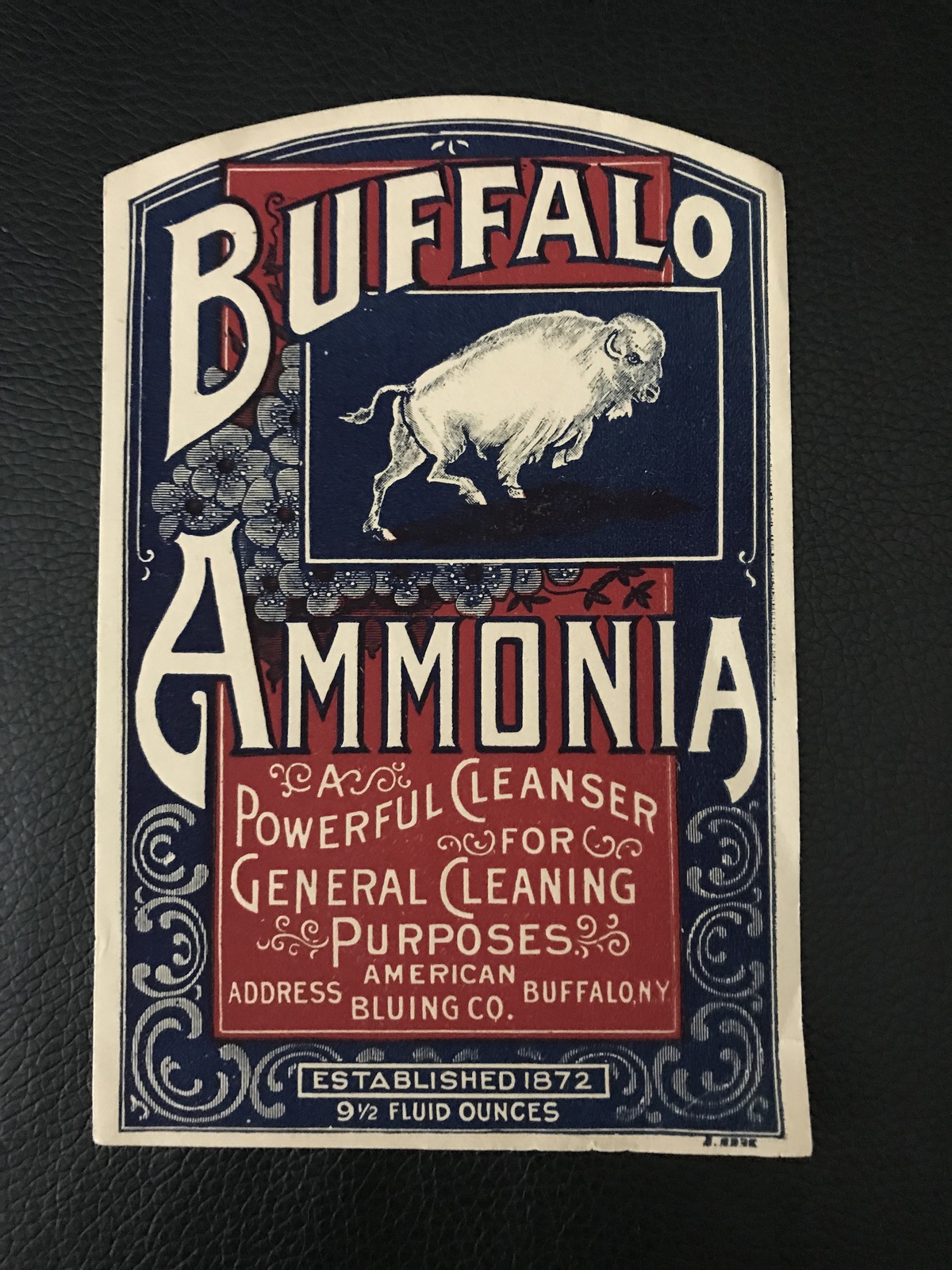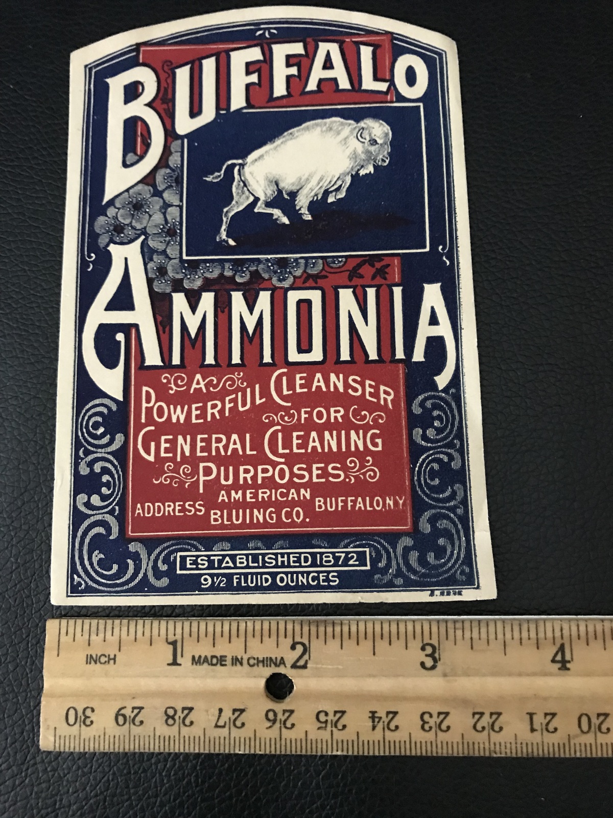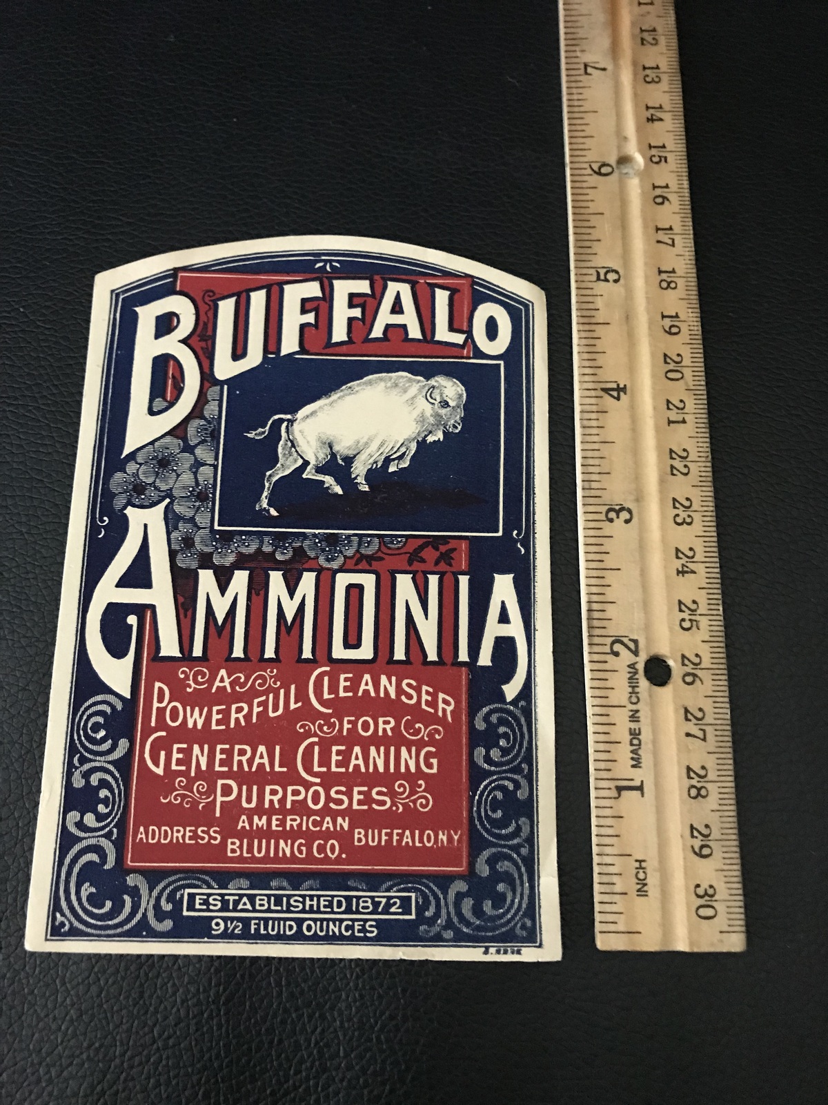 Vintage Original BUFFALO AMMONIA Cleaner Cleaning Bottle Label 1910s
