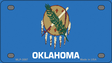 Oklahoma Flag Novelty Mini Metal License Plate Tag. 2.2" x 4" high gloss novelty mini metal license plate tag. Made of the highest quality aluminum for a weather resistant finish. It is lightweight and durable. Pre-drilled holes for quick and easy mounting on any vehicle, or add a ribbon, wire or string to instantly turn this license plate into a sign and display it on a wall or door. Individually shrink-wrapped and proudly made in the USA.