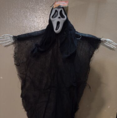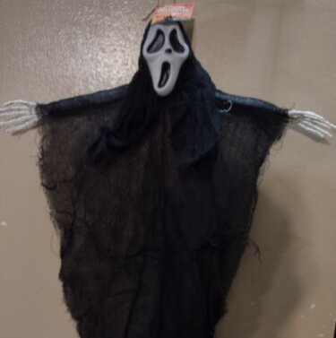black and white ghost face hanging decoration |