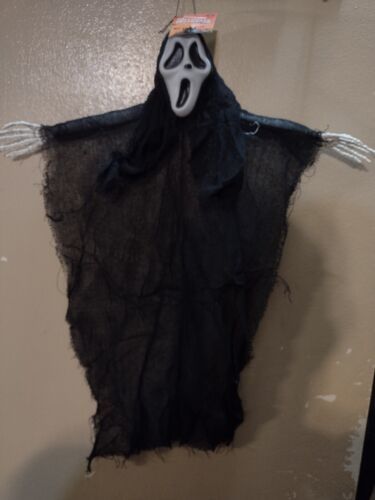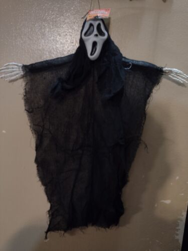 You are Buying a brand New And Factory Sealed Halloween hanging decoration black and white ghost face 14 inches by 12 in can be hung out of trees or around fences or doors.