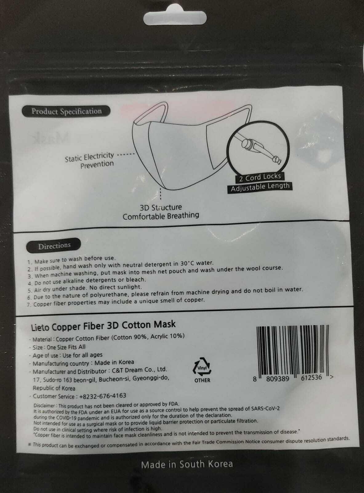 Lieto Copper Fiber 3D Cotton Mask Adjustable and 50 similar items