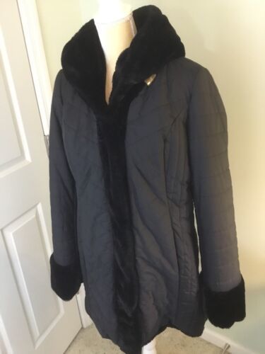 Dennis Basso Faux Fur & Water Resistant Reversible Black Quilted Coat Medium