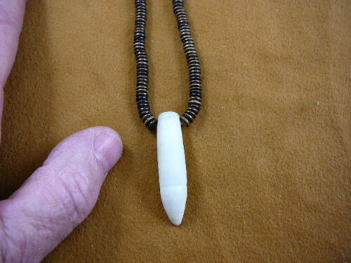 G159-102) 1-3/4" GATOR Aligator Tooth Teeth brown aceh bovine bone Bead NECKLACE