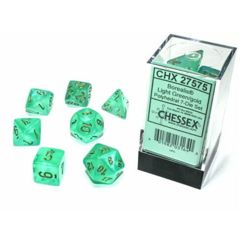 CHX 27575 Borealis Polyhedral Light Green/Gold Luminary 7-Die Set.