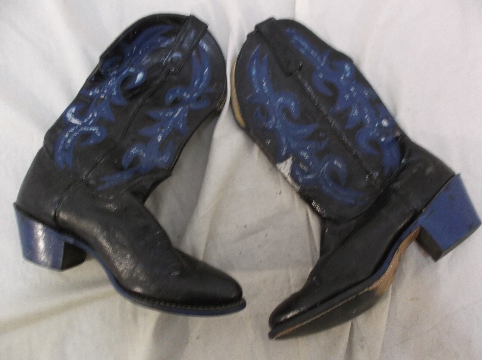 Texas Brand Women's Western Cowboy Style 4970 7.5M 7 1/2 M Boots Black Blue Silver
